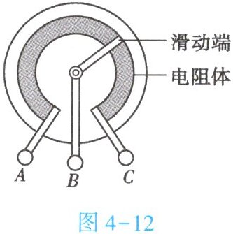 5. (★★)小红买了一个电位器,如图4 - 12所示,如果把它与灯泡串联起来,利用它可以改变灯泡的亮度。现想使滑动端顺时针转动时,灯泡变暗,下列连法正确的是【