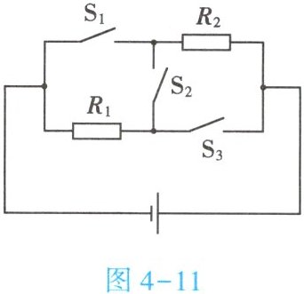 3. (★★★)如图4 - 11所示的电路图中,当$S_1、$$S_3$断开$,S_2$闭合时,电阻$R_1$与$R_2$