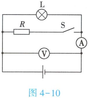 2. (★★)如图4 - 10所示的电路图中,电源电压恒定,灯泡L上标有“3.8 V”字样,开关S断开时,灯泡L发光,电表正常工作。当开关S闭合后,电流表的示数