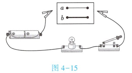9. (★★)小明用如图4 - 15所示的器材“探究影响电阻大小的因素”,a、b为长度相同的镍铬合金丝,b比a的横截面积大。下列说法正确的是【