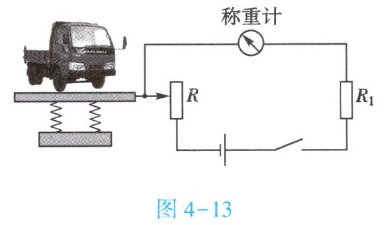 6. (★★)高速公路收费站对过往的货车实施计重收费,某同学结合所学的物理知识设计了如图4 - 13所示的计重秤原理图,下列说法正确的是【