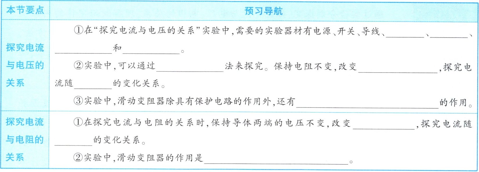 的作用。||探究电流与电阻的关系|①在探究电流与电阻的关系时,保持导体两端的电压不变,改变