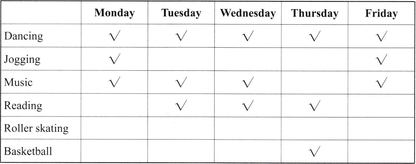 二、下面是基蒂本周的课外活动安排表,仔细读一读,用适当的频度副词填空