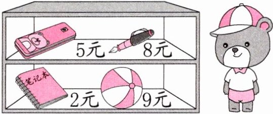 (2)淘气买一些物品一共花了$2×5 + 8 = 18$(元),他可能买的是(