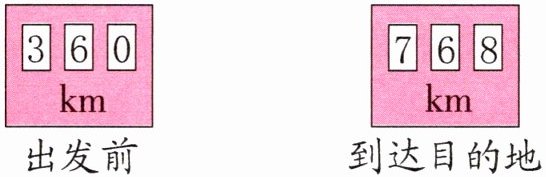 5. 小明一家开车出游,4 小时到达目的地,根据下图里程表的变化,算一算这辆车平均每小时行驶多少千米。