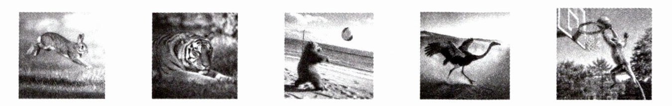 二、Listen and number. 运动会上,狮子正在问机灵的小兔子问题。请按照它们谈话内容的先后顺序,用数字 1—5 给下列图片排序。
