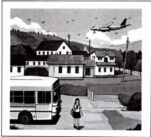 a small town.2. A bus goes