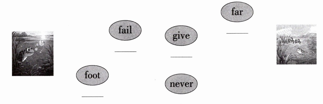 一、Listen and number. 小青蛙在和妈妈捉迷藏。请根据所听内容的先后顺序,用数字 1—5 给下列单词标号。