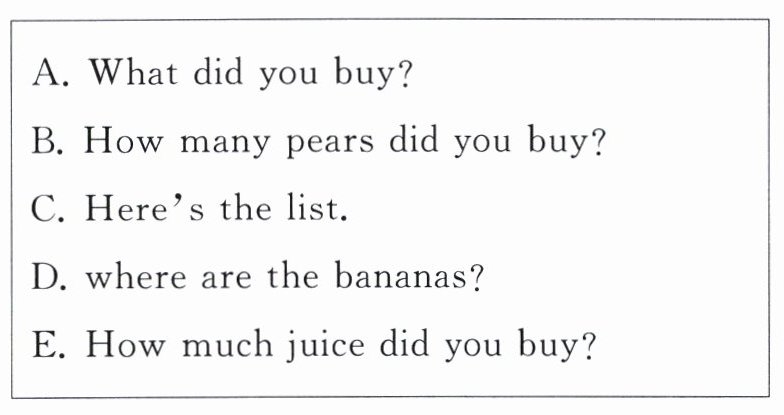 A 篇:阅读购物清单,写句子补全对话。(10 分)