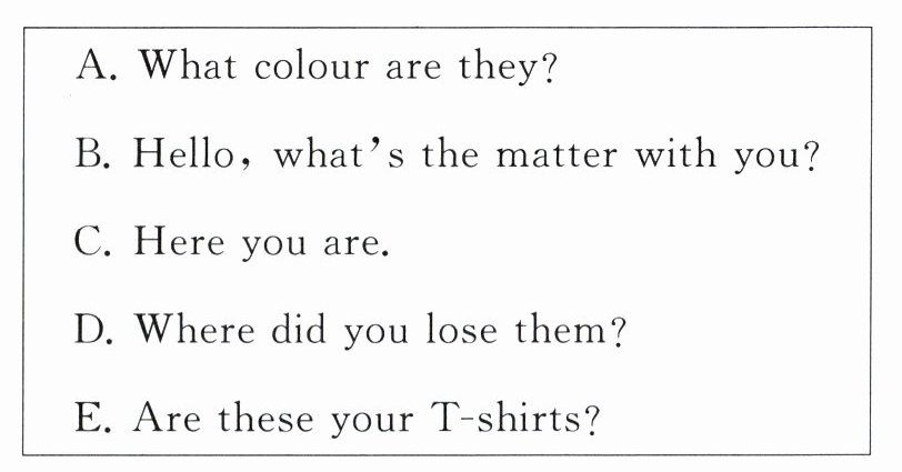 六、如果东西丢了先别慌,我们可以去失物招领处问一问。根据上下文选择恰当的选项补全对话,将其序号填在横线上。(5 分)