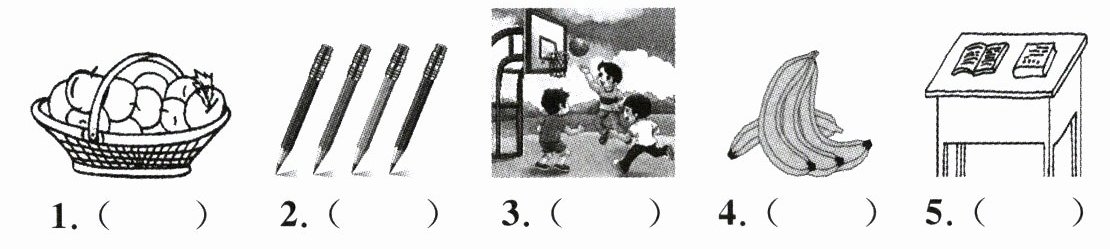 一、听录音,选出你所听到的句子中包含的单词。录音读两遍。(5 分)