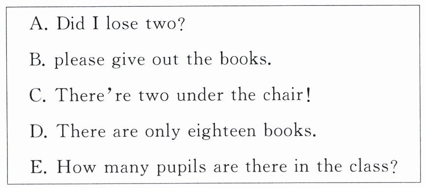 Sam:Twenty pupils. One,two... eighteen books. 3. ______