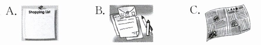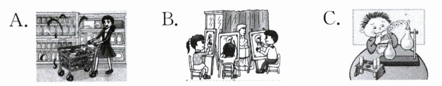 二、听录音,找出与你所听内容相符的图片。录音读两遍。(5 分)