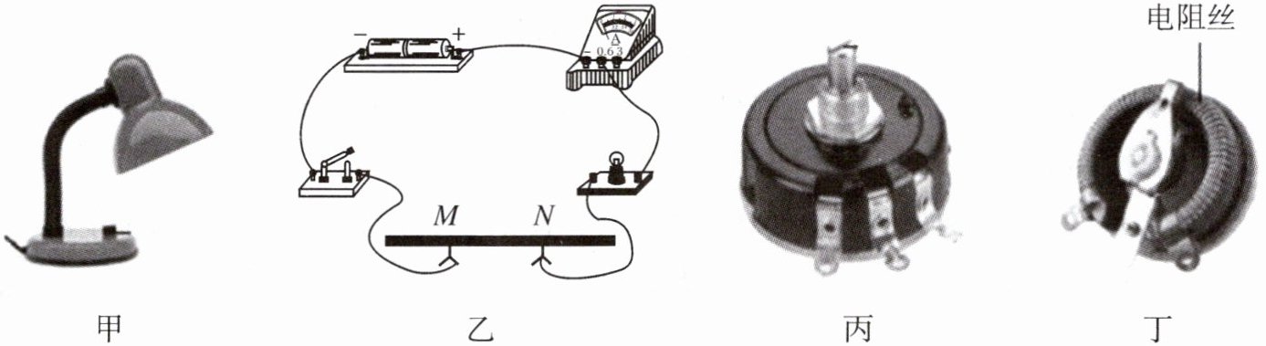 有关。(2)由于铅笔芯易断,小洋在实验室找了一个电位器来替代铅笔芯,如图丙,其内部结构如图丁。小洋查找到表格中的信息,为更好实现电位器调节灯泡亮度的功能,电位器内的电阻丝应选用