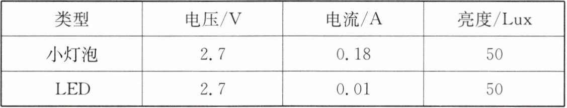 (3)小昕提出用LED灯替代小灯泡可能会更加节能,她分别测出小灯泡和LED发光时的电压、电流和对应的亮度值,记录了数据如表: