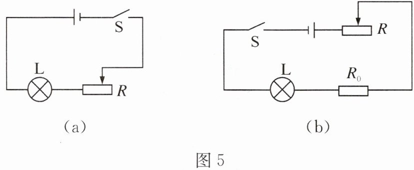 展示交流:如图5是两个同学设计的台灯调光电路,老师认为图(b)方案更好一些,理由是______。