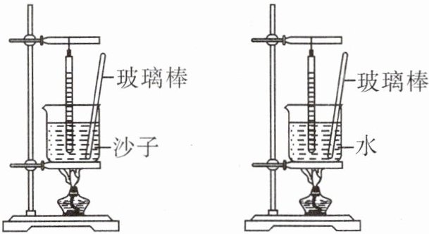(填“>”“<”或“=”)Q水;②升高相同的温度,发现沙子用时短,说明