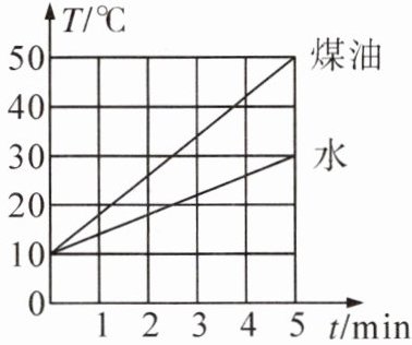 8. 根据实验数据描绘水和煤油的温度随加热时间变化的图像如图所示,分析图像可知:水升温较