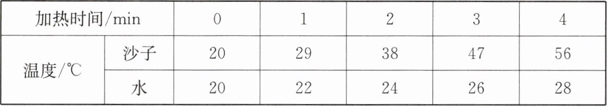 (3)小明还发现刚开始加热时,沙子升温速度比水小,可能的原因是