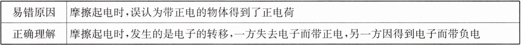 |易错原因|摩擦起电时,误认为带正电的物体得到了正电荷|