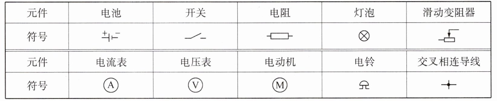 |元件|电流表|电压表|电动机|电铃|交叉相连导线|