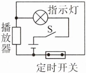 6. 如图所示是一种定时课间音乐播放装置的原理图. “播放器”有电流通过时会播放音乐;“定时开关”到达设定时间时会自动断开. 闭合开关S,当“定时开关”处于闭合状态时,指示灯