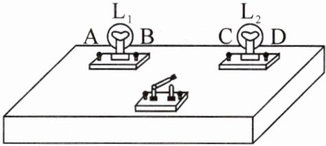 7. 物理课上,老师给同学们展示了一个有盖的木盒,盒盖上可看到两只灯泡和一只开关(导线的连接情况隐藏在盒内),如图所示。
