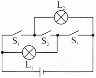 4. (2024 年自贡市)在如图所示的电路图中,闭合开关 $ S_1 $、$ S_3 $,断开开关 $ S_2 $,则小灯泡 $ L_1 $、$ L_2 $ 是