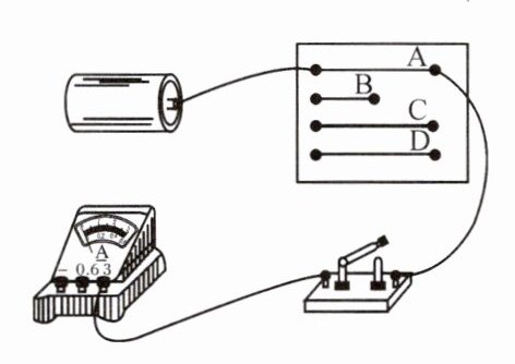 (2)分别将鳄鱼夹与 $ A $、$ B $、$ C $、$ D $ 四根金属丝连接,读出电流表读数并填入表格.