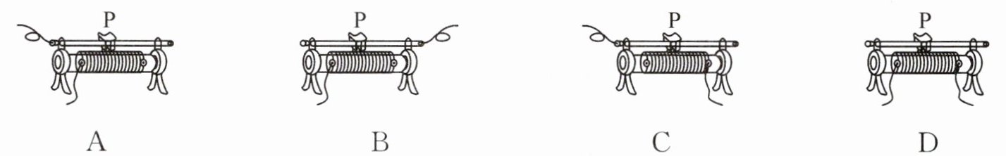 1. 下图给出了滑动变阻器四种接入电路的结构示意图。其中,当滑片P向左滑动时,连入电路中的电阻变大的接法是(