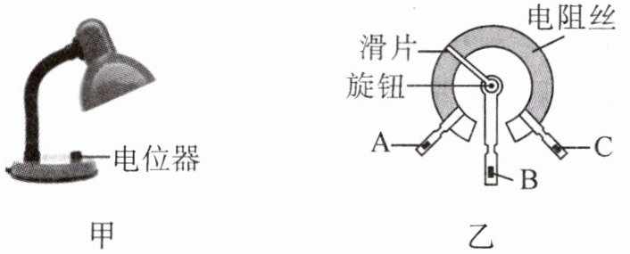 2. [物理与生活]如图所示,甲为某调光台灯,乙为该调光台灯用到的电位器的结构图,A、B、C为电位器的三个接线柱,转动滑片可调节灯泡亮度。下列分析正确的是(