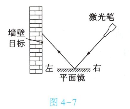 3. (★★)如图4-7所示,水平地面上放置着一块平面镜,若要使图中的反射光线射中墙壁上的目标,在激光笔不动的情况下,可将平面镜【