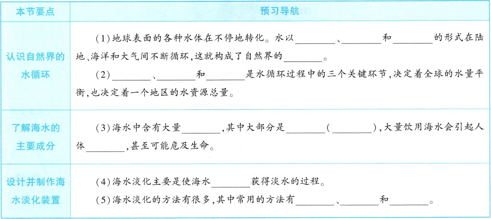 3. (★)海水淡化的方法有很多,其中蒸馏法是先把海水加热,使海水产生