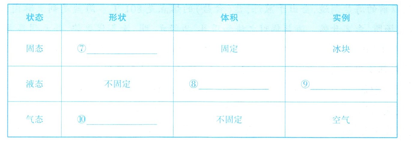 ⑩气态的形状为不固定,应填“不固定”。