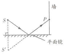 15. 如图 4 - 8 所示,从光源 S 点发出的一条光线射向平面镜,经平面镜反射后射向墙上的 P 点。请你作出这条入射光线并完成光路图。