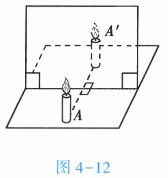 (3)如图 4 - 12 所示,按照实验思路进行操作,观察蜡烛与像完全重合后,在纸上分别标记平面镜、蜡烛和像的位置,并测量蜡烛和像到平面镜的