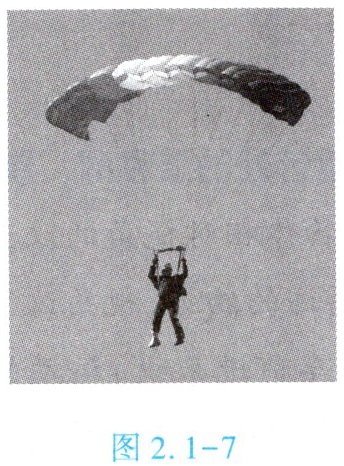 4. (★★★)图 2.1 - 7 所示的是运动员在空中降落时的情境。请针对运动员匀速降落的过程,从运动和静止的相对性角度提出一个问题并回答。