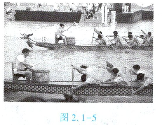 1. (★★)图 2.1 - 5 是中华龙舟大赛鄱阳湖国家湿地公园站的精彩比赛画面,龙舟上的运动员相对于岸上观众是