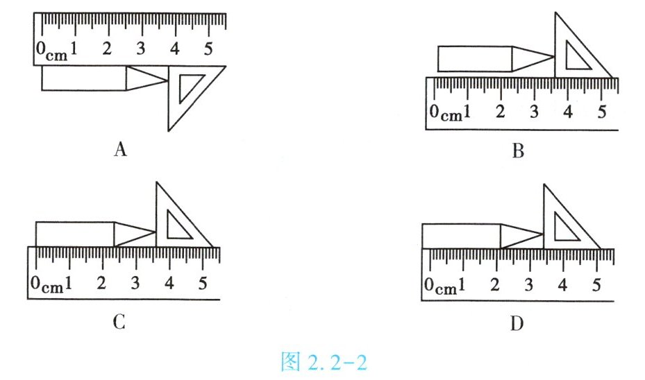 4. (★★)如图 2.2 - 2 所示,用刻度尺测量铅笔的长度,测量方法正确的是【