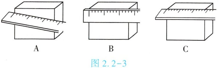 3. (★★)用厚刻度尺测量物体的长度,图 2.2 - 3 中测量方法正确的是