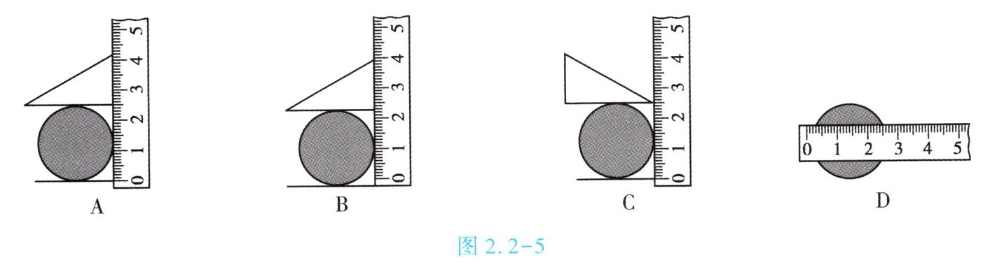 7. (★★)如图 2.2 - 5 所示,利用直尺和三角板测量一个圆柱体的直径,其中方法正确的是【