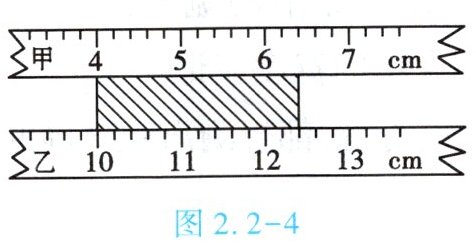 6. (★★)用甲、乙两个刻度尺测量同一木块的长度,如图 2.2 - 4 所示,对两个刻度尺的精确度、放置的正确情况及木块的长度,下面判断正确的是【