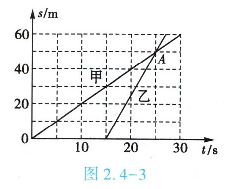 2. (★★★)甲、乙两车沿笔直的公路从同一地点同向行驶,图 2.4 - 3 所示的图线分别表示它们运动的路程随时间变化的规律。