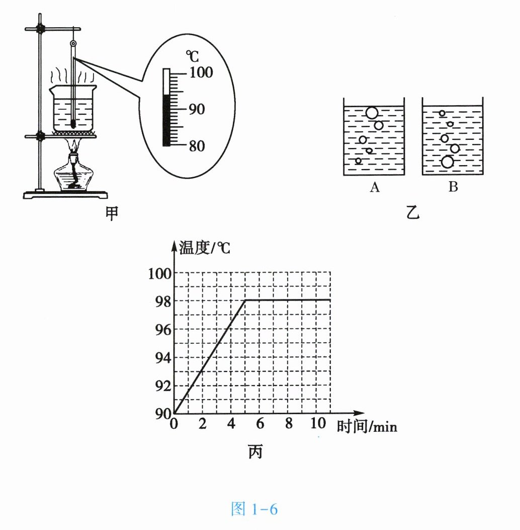 ℃。图 1-6 乙中,表示水在沸腾时的现象的是图A