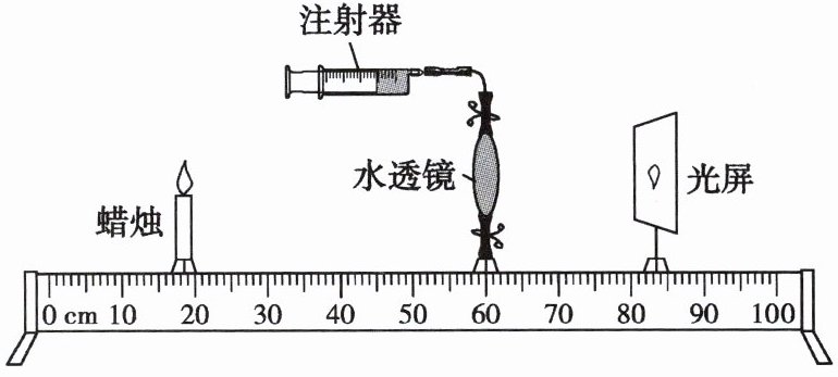 】A.向水透镜注水,烛焰的像成在光屏右侧