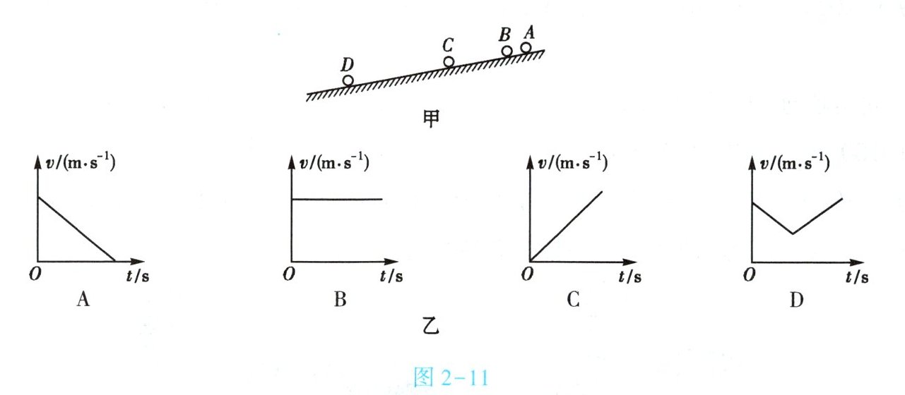 m/s。(3)如图2-11乙所示,能说明小球在斜面上运动情况的是图像