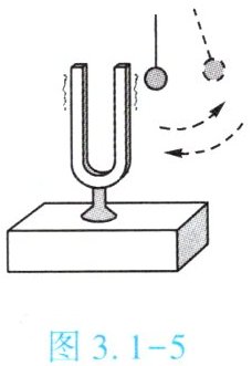 2. (★★★)如图 3.1 - 5 所示,在探究声音是由物体振动产生的实验中,将正在发声的音叉紧靠悬线下的轻质小球,小球多次被弹开。在此实验中,小球的作用是【