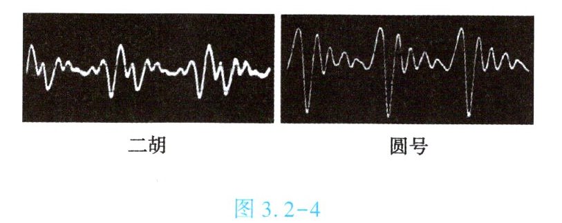 3. ($\bigstar\bigstar\bigstar$)某同学使用二胡和圆号演奏同一乐曲,如图3.2-4所示为其采集到的发出声音的波形图。从图中可以知道,两种乐器发出声音的音调