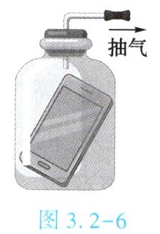 5. ($\bigstar\bigstar\bigstar$)(2023·山东潍坊)如图3.2-6所示,将正在响铃的手机悬挂于广口瓶内,封闭瓶口,逐渐抽出其中的空气。对比抽气前后从瓶中传出的响铃声音,下列分析正确的是【