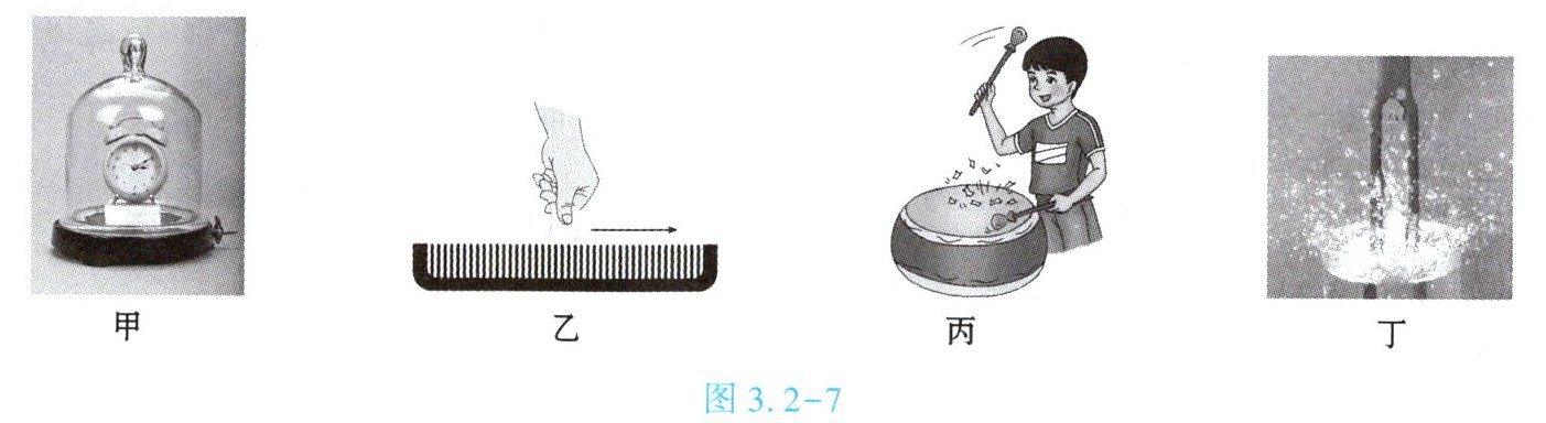 6. ($\bigstar\bigstar\bigstar$)为了探究声音的响度与振幅的关系,小明设计了如图3.2-7所示的几个实验,你认为能够完成这个探究目的是【